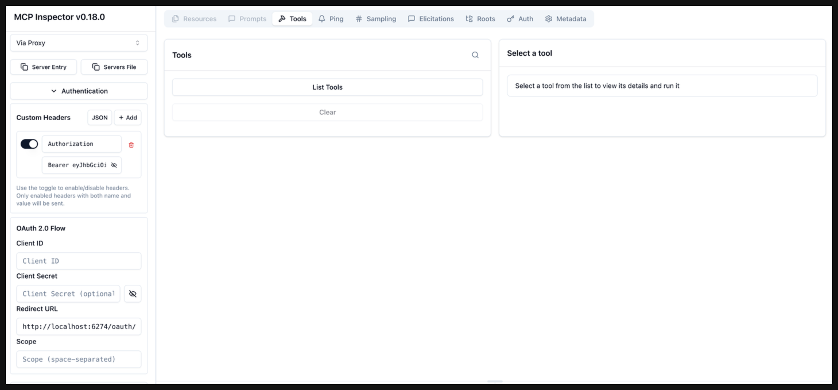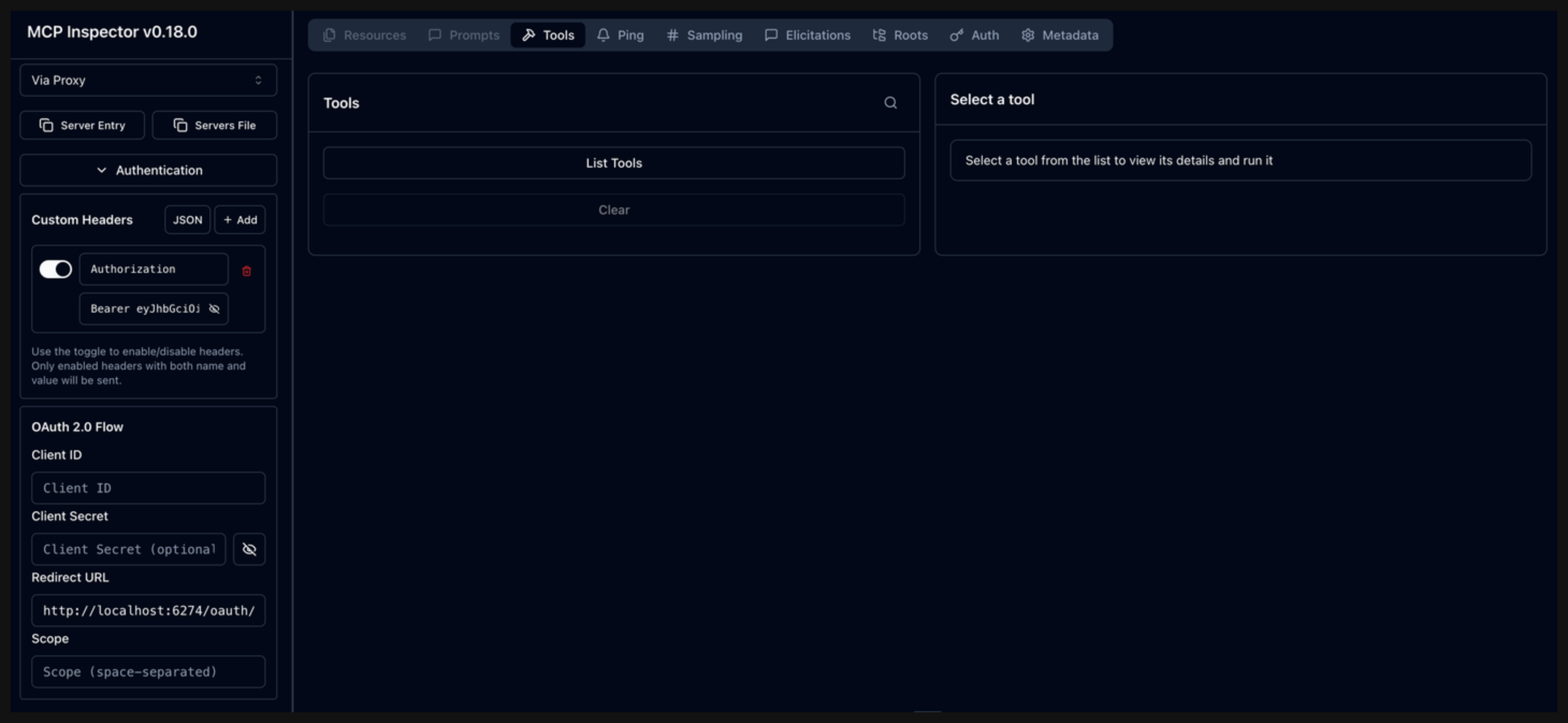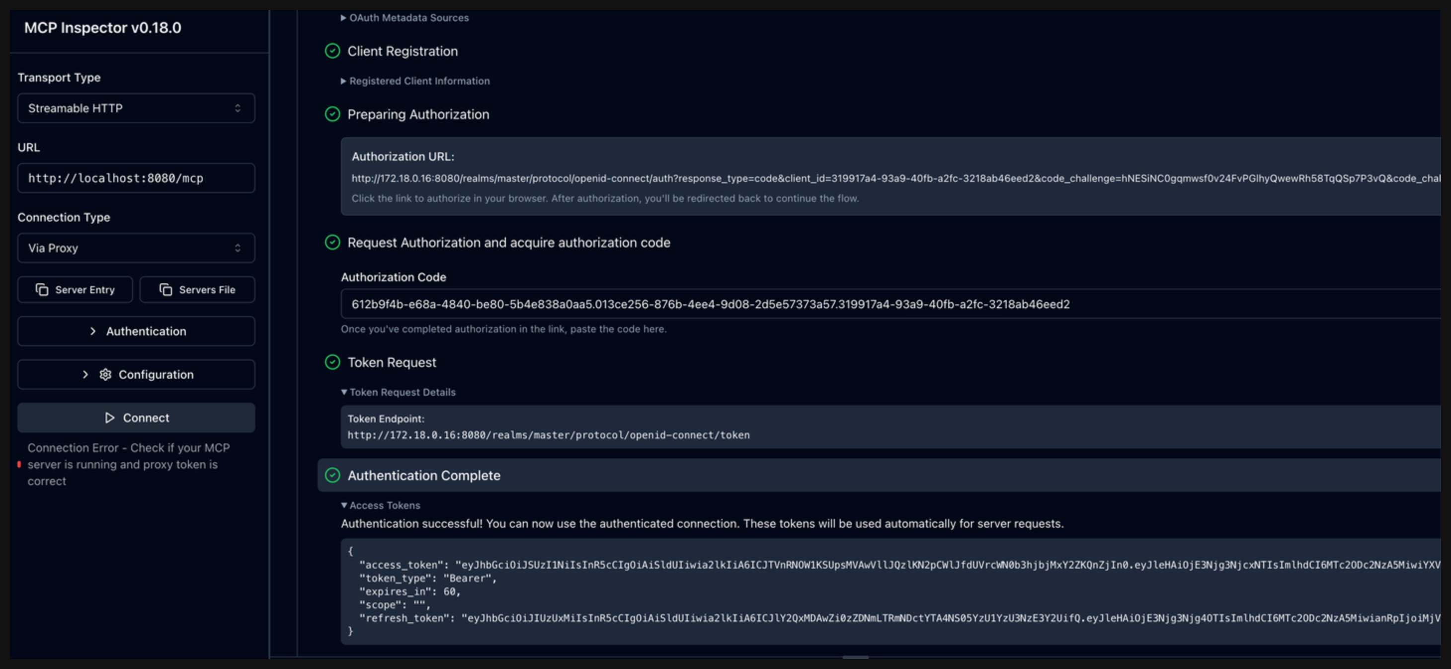 access_tokenvalue from the Authentication Complete phase. - Open the Authentication section in the MCP inspector.