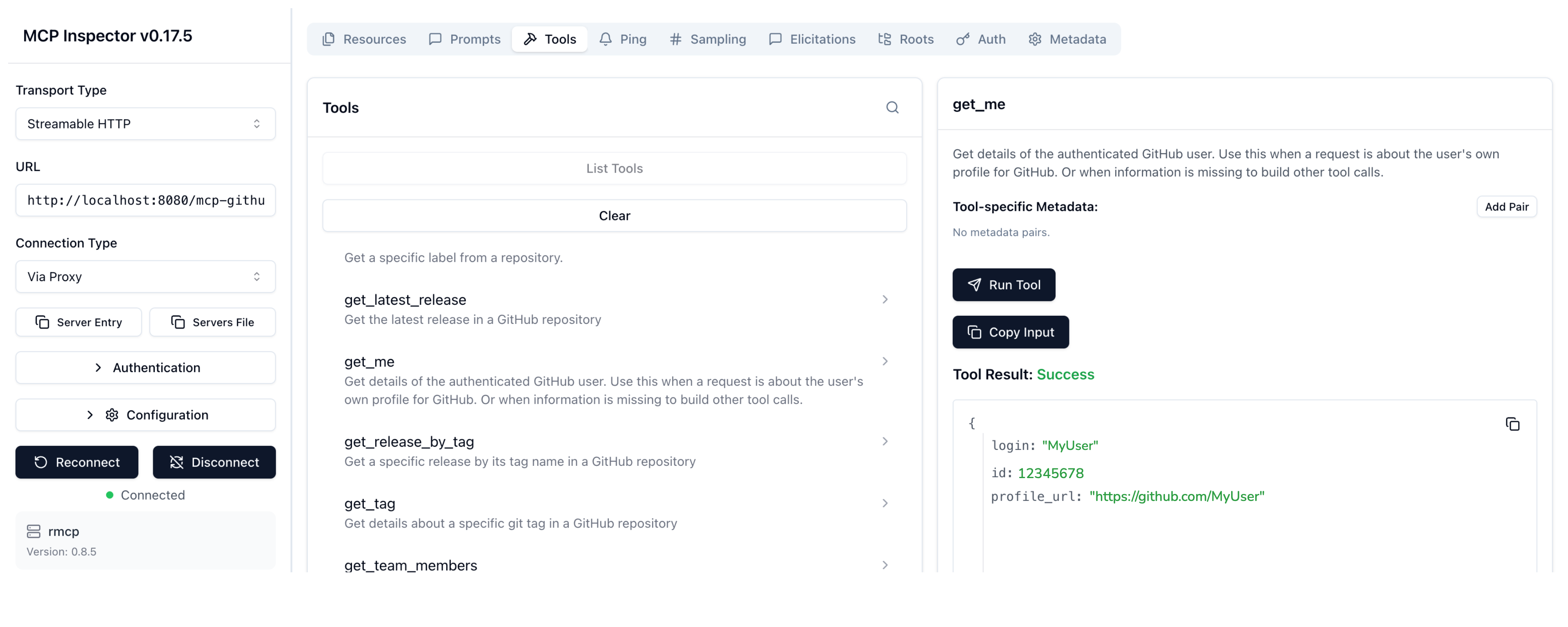 2. From your terminal, run the MCP Inspector command to open the MCP Inspector in your browser. If the MCP inspector tool does not open automatically, run mcp-inspector.